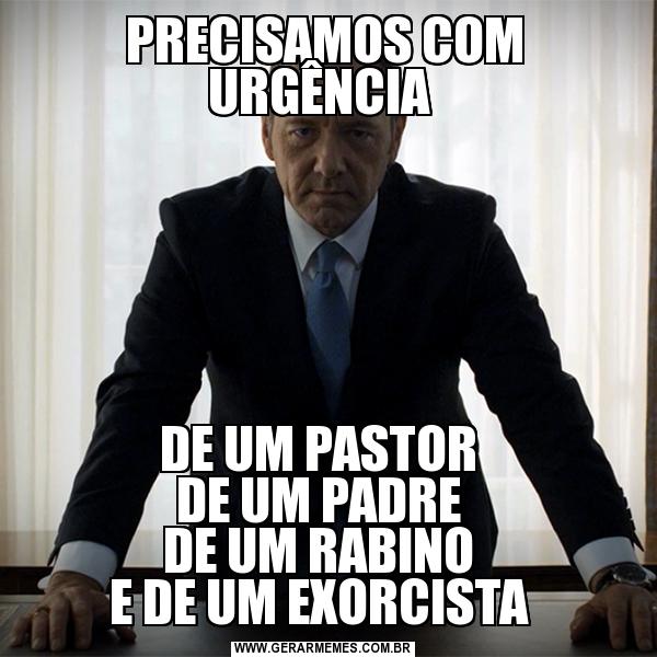 PRECISAMOS COM URGÊNCIA DE UM PASTOR DE UM PADRE DE UM RABINO E DE UM EXORCISTA