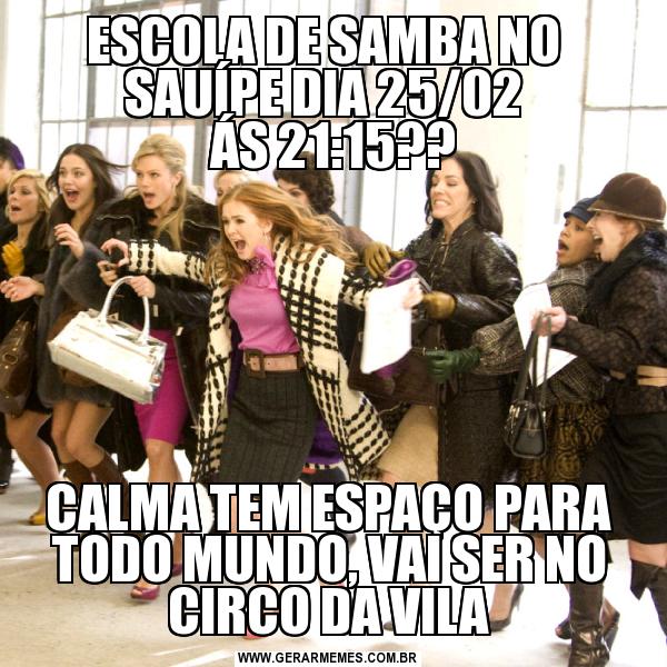 ESCOLA DE SAMBA NO SAUÍPE DIA 25/02 ÁS 21:15?? CALMA TEM ESPAÇO PARA TODO MUNDO, VAI SER NO CIRCO DA VILA