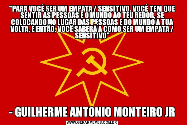 "PARA VOCÊ SER UM EMPATA / SENSITIVO, VOCÊ TEM QUE SENTIR AS PESSOAS E O MUNDO AO TEU REDOR, SE COLOCANDO NO LUGAR DAS PESSOAS E DO MUNDO A TUA VOLTA, E ENTÃO, VOCÊ SABERÁ A COMO SER UM EMPATA / SENSITIVO" - GUILHERME ANTONIO MONTEIRO JR
