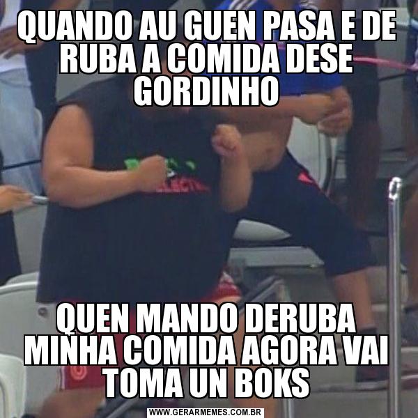 QUANDO AU GUEN PASA E DE RUBA A COMIDA DESE GORDINHO QUEN MANDO DERUBA MINHA COMIDA AGORA VAI TOMA UN BOKS