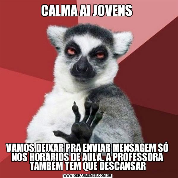 CALMA AI JOVENS VAMOS DEIXAR PRA ENVIAR MENSAGEM SÓ NOS HORÁRIOS DE AULA, A PROFESSORA TAMBÉM TEM QUE DESCANSAR
