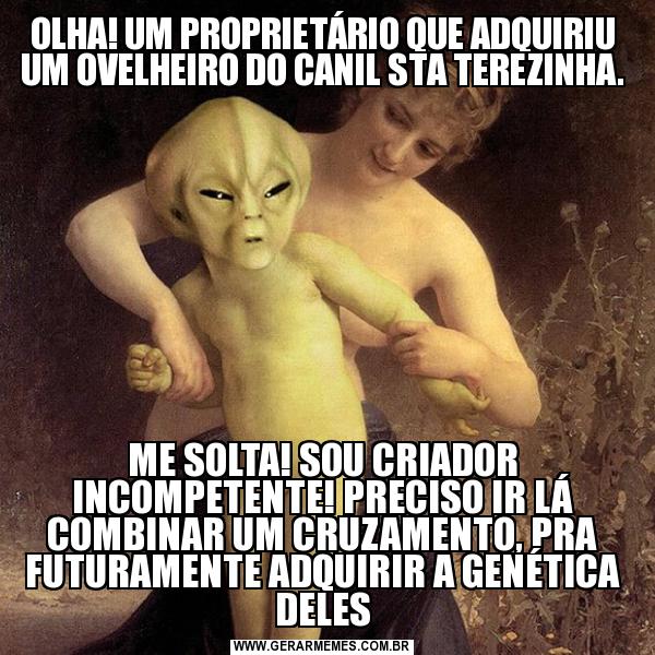 OLHA! UM PROPRIETÁRIO QUE ADQUIRIU UM OVELHEIRO DO CANIL STA TEREZINHA. ME SOLTA! SOU CRIADOR INCOMPETENTE! PRECISO IR LÁ COMBINAR UM CRUZAMENTO, PRA FUTURAMENTE ADQUIRIR A GENÉTICA DELES