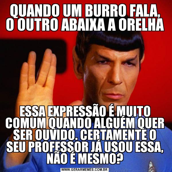 QUANDO UM BURRO FALA, O OUTRO ABAIXA A ORELHA ESSA EXPRESSÃO É MUITO COMUM QUANDO ALGUÉM QUER SER OUVIDO. CERTAMENTE O SEU PROFESSOR JÁ USOU ESSA, NÃO É MESMO?